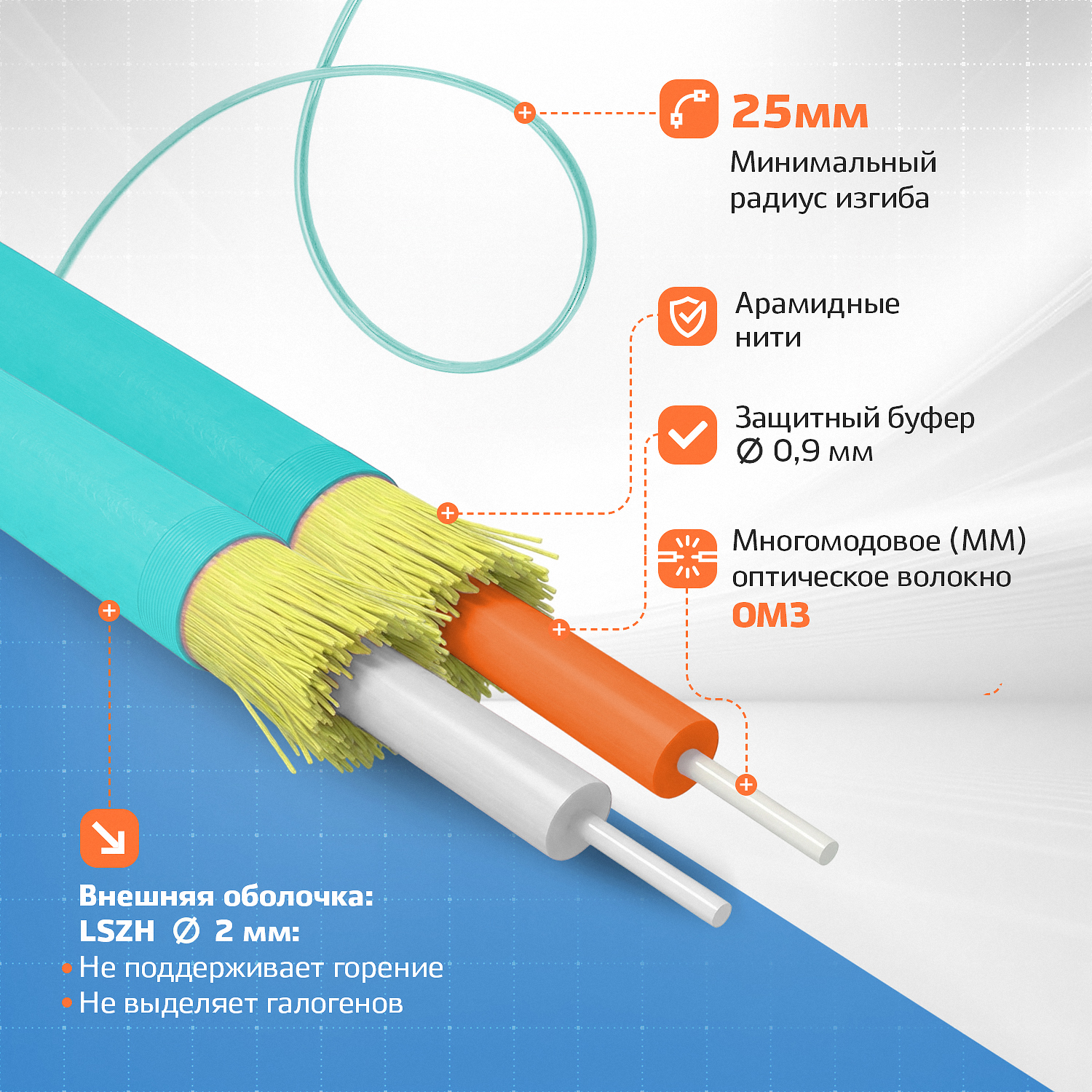 В основе многомодового кабеля Duplex лежат жилы оптоволокна типа OM3 (Multimode)