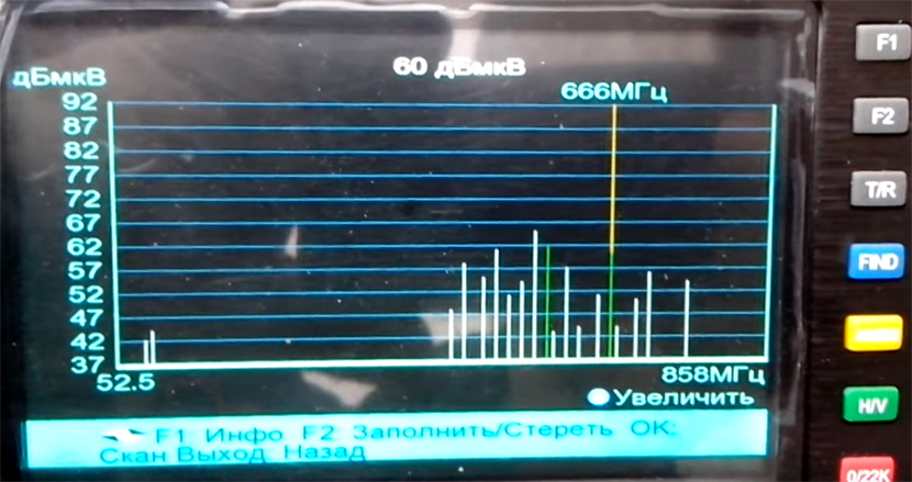 "ТСВ Комбо" может использоваться для измерения спутникового, эфирного и кабельного телевизионного сигнала. С этой целью в меню тестера имеются следующие пункты: